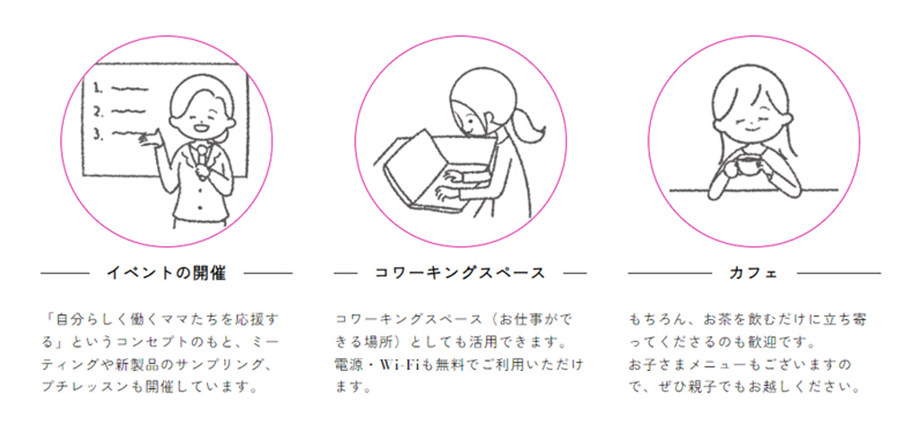 「おしごとカフェ」の紹介部分は、文章だけでなくイラストも入れることで、よりイメージが湧きやすいよう工夫しました。