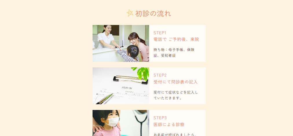 初診の方に向けたページでは、見やすさを考えて写真を多く使用しています。