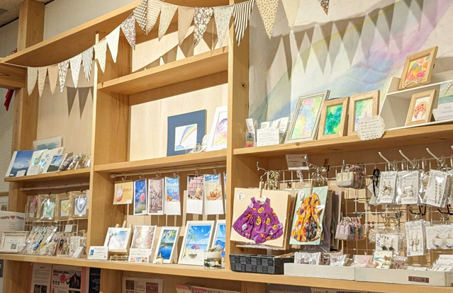 壁面のボックスは、ハンドメイド作品を展示・販売するレンタルギャラリー。アクセサリーや革製品、編み小物など、趣味に磨きをかけ、お店を持ちたいという夢を持つ作家たちが、自分のコーナーを持つことができます。「ココ*ミテコ」にて展示・販売希望の方は、下記フォームよりお申込みください。