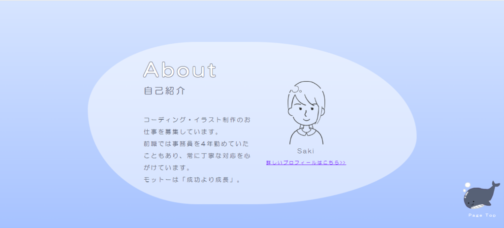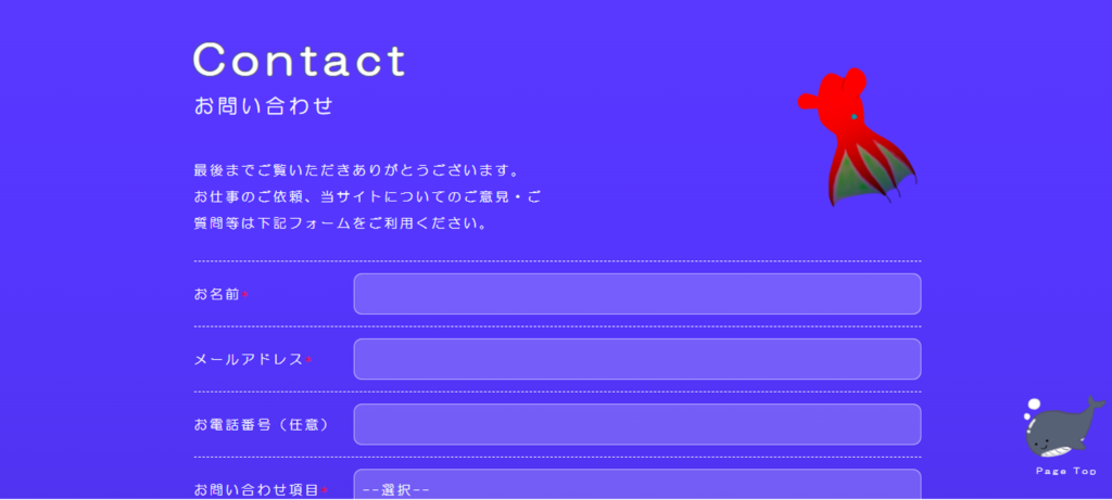 下へスクロールするほど背景が濃くなり、海の中にいるような雰囲気を出しています。